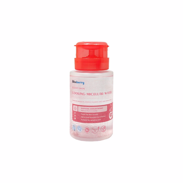 Nước Tẩy Trang Blissberry Glowy Skin Cooling Micellar Water là dòng sản phẩm tẩy trang đến từ thương hiệu Blissberry – dược mỹ phẩm đến từ Hàn Quốc. Với công nghệ làm sạch Micellar chứa các hạt Softigen 767 giúp làm sạch các lớp trang điểm, bụi bẩn và dầu thừa sâu bên trong lỗ chân lông mà không gây khô da. Với phức hợp Soothing Cooler giúp làm mát da và giảm nhiệt độ thừa trên da, ngăn ngừa lão hóa da do tác động của nhiệt độ. Công thức dịu nhẹ, không kích ứng, không gây khô căng da, cấp ẩm và xoa dịu da, đặc an toàn cho làn da nhạy cảm.