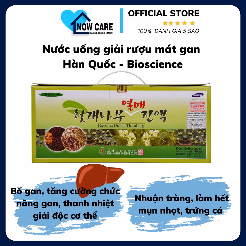 ☘️ Nước Bổ Gan Giải Rượu Bio-Science Hàn Quốc (vỏ hộp có hình 2 vòng) có 45% thành phần chiết xuất từ hạt Hovenia nên rất tốt cho gan, giúp tăng cường các chức năng gan, giúp thải trừ các độc tố có hại, hỗ trợ làm cho gan khoẻ mạnh và có khả năng phục hồi tốt cho các trường hợp nhiễm bệnh gan. sản phẩm còn có tác dụng bồi bổ cơ thể, thanh nhiệt giải độc, giải trừ các độc tố có hại trong rượu và làm mất các triệu chứng sau khi uống rượu như buồn nôn, đau đầu, ợ nóng.