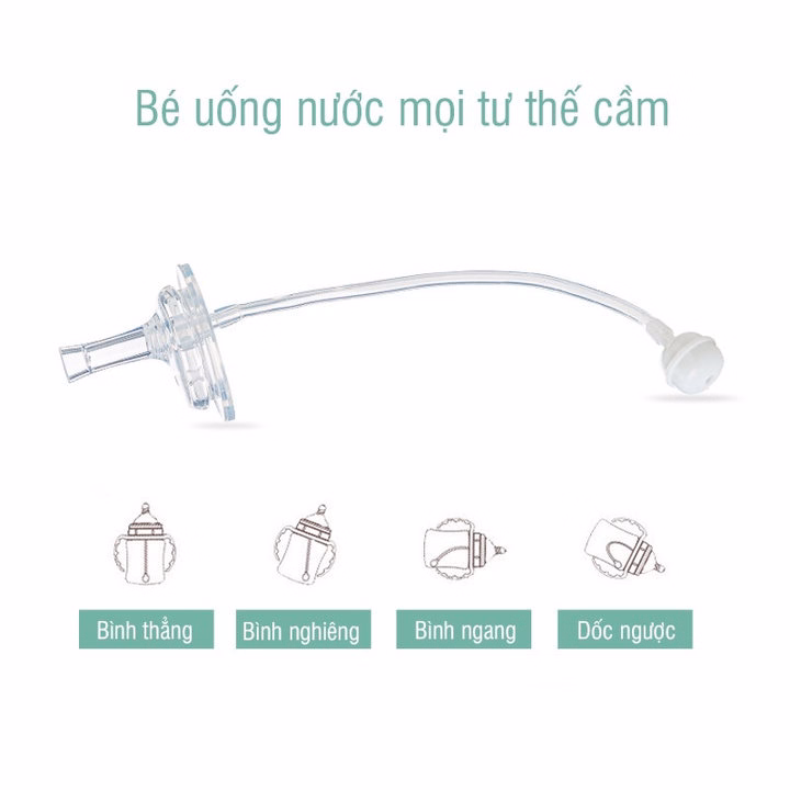 Ống hút chống sặc thay thế cho bình cổ rộng, bộ chuyển đổi từ Núm qua Ống Hút( Wesser, Moyuum, Bebepick, Pigeon, Lans) là giải pháp tuyệt vời cho các bé đang dùng bình sữa cổ rộng mà mẹ muốn chuyển sang giai đoạn tập hút, không phải mua bình tập hút mới.
