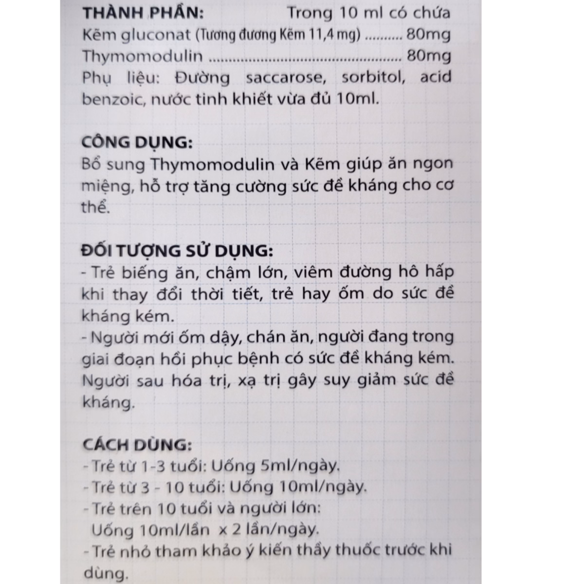 Kẽm gluconat (Tương đương kẽm 11,4mg)………………………80mg