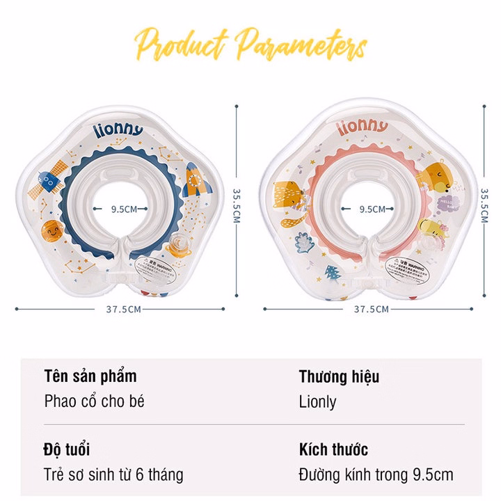 – Phao bơi được thiết kế để lồng vào cổ giúp mặt, mũi và tai bé không bị nước tràn vào, từ đó đảm bảo an toàn hơn và không làm những bé ít tuổi bị hoảng sợ. Trong khi đó, phần thân dưới của bé vẫn được tự do vẫy vùng trong nước giúp bé vui chơi thoải mái hơn.