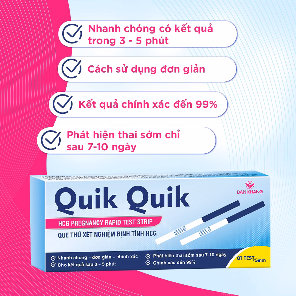 Que Thử Thai Quik Quik Hiệu Quả Nhanh Chóng, Đơn Giản, Tiện Lợi, Chính Xác 1 Que/Hộp -Dân Khang