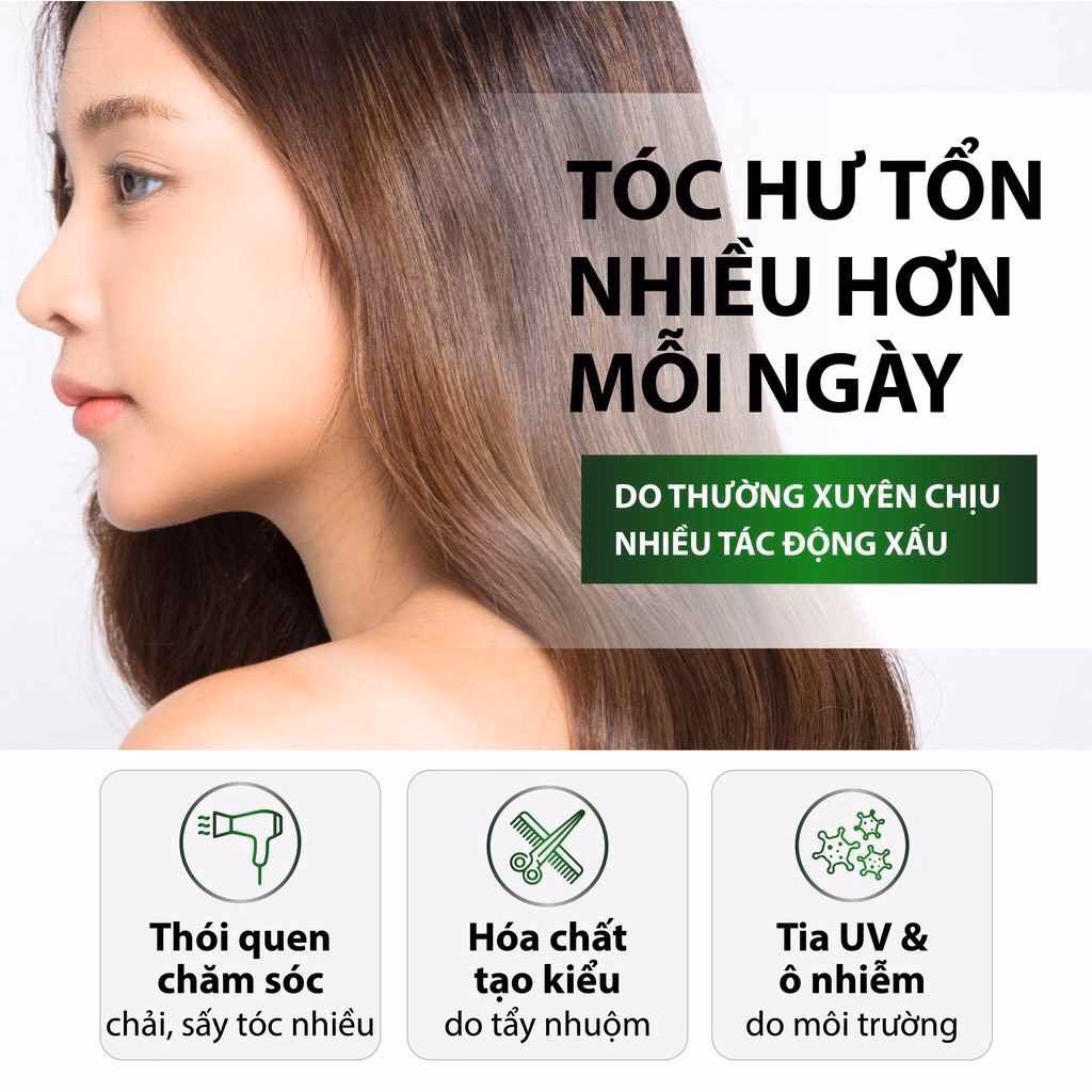 Bảo vệ tóc đến 98% khỏi nhiệt độ cao (sấy, uốn, duỗi,…) và hoá chất nhuộm, tạo kiểu.