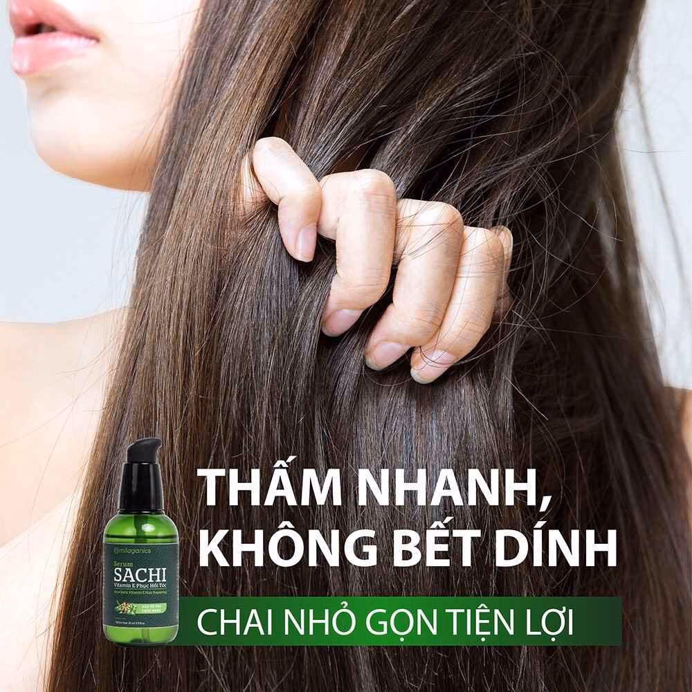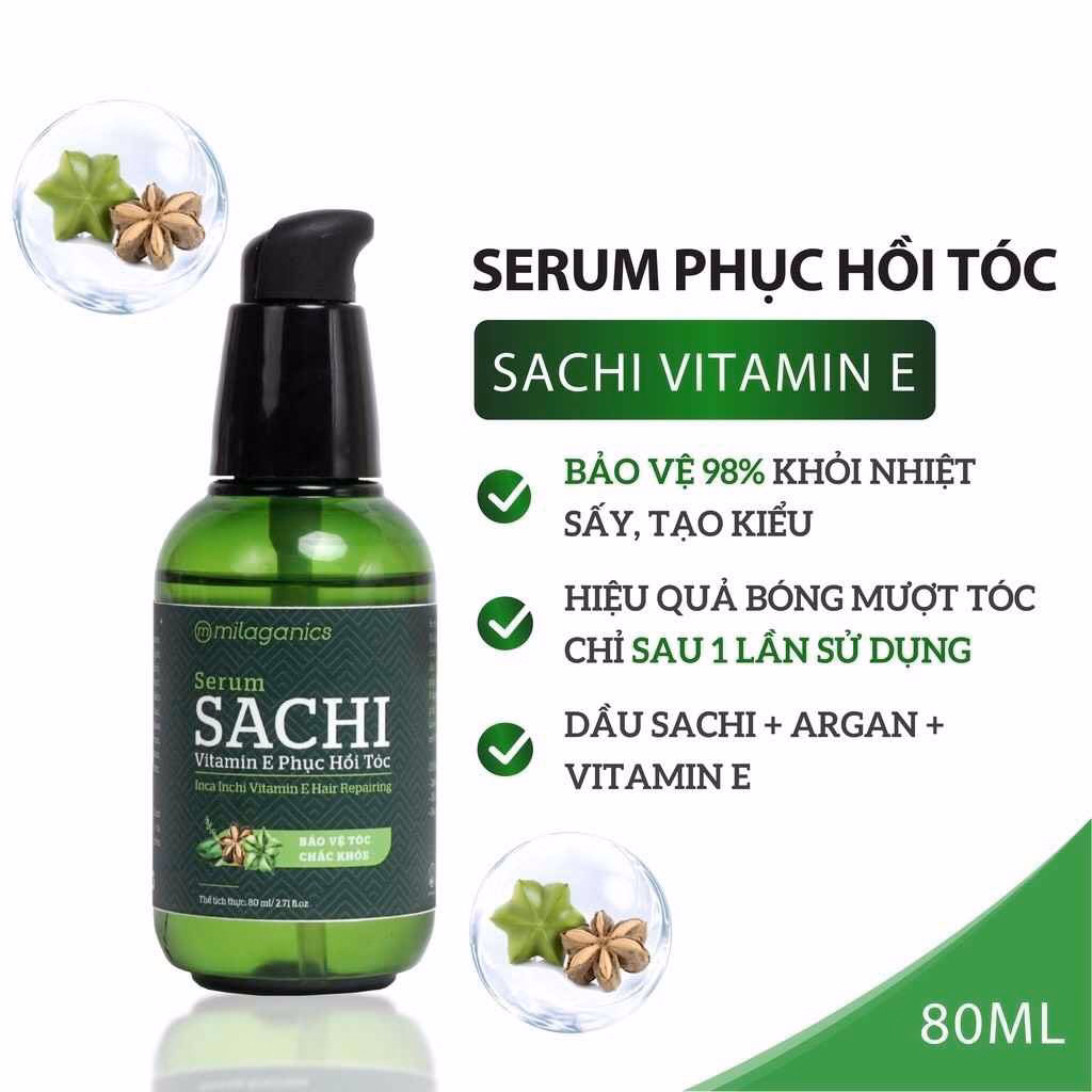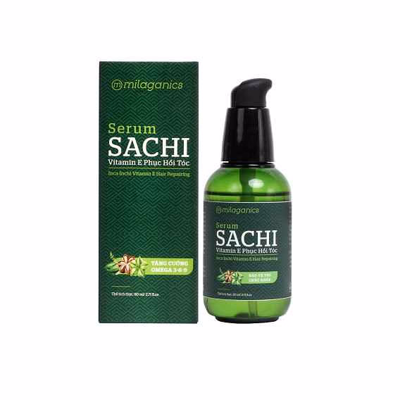 Serum Sachi Phục Hồi Tóc Vitamin E Milaganics chính là sản phẩm không thể thiếu của các cô nàng hiện đại không ngại thay đổi phong cách thông qua mái tóc. Với dầu Sachi 100% nguyên chất, Serum Sachi bổ sung tỉ lệ vàng Omega 3-6-9 giúp tạo lớp màng bảo vệ tóc đến 98% khỏi nhiệt độ cao khi sấy, uốn, duỗi,… và hoá chất tạo kiểu. Bên cạnh đó, Serum còn tăng cường các “thần dược” chống oxy hóa như dầu Dừa, dầu Argan, dầu Hạnh Nhân kết hợp với hàm lượng lớn vitamin E giúp tóc chắc khỏe, giảm khô xơ và mềm mượt tức thì chỉ sau 1 lần sử dụng.