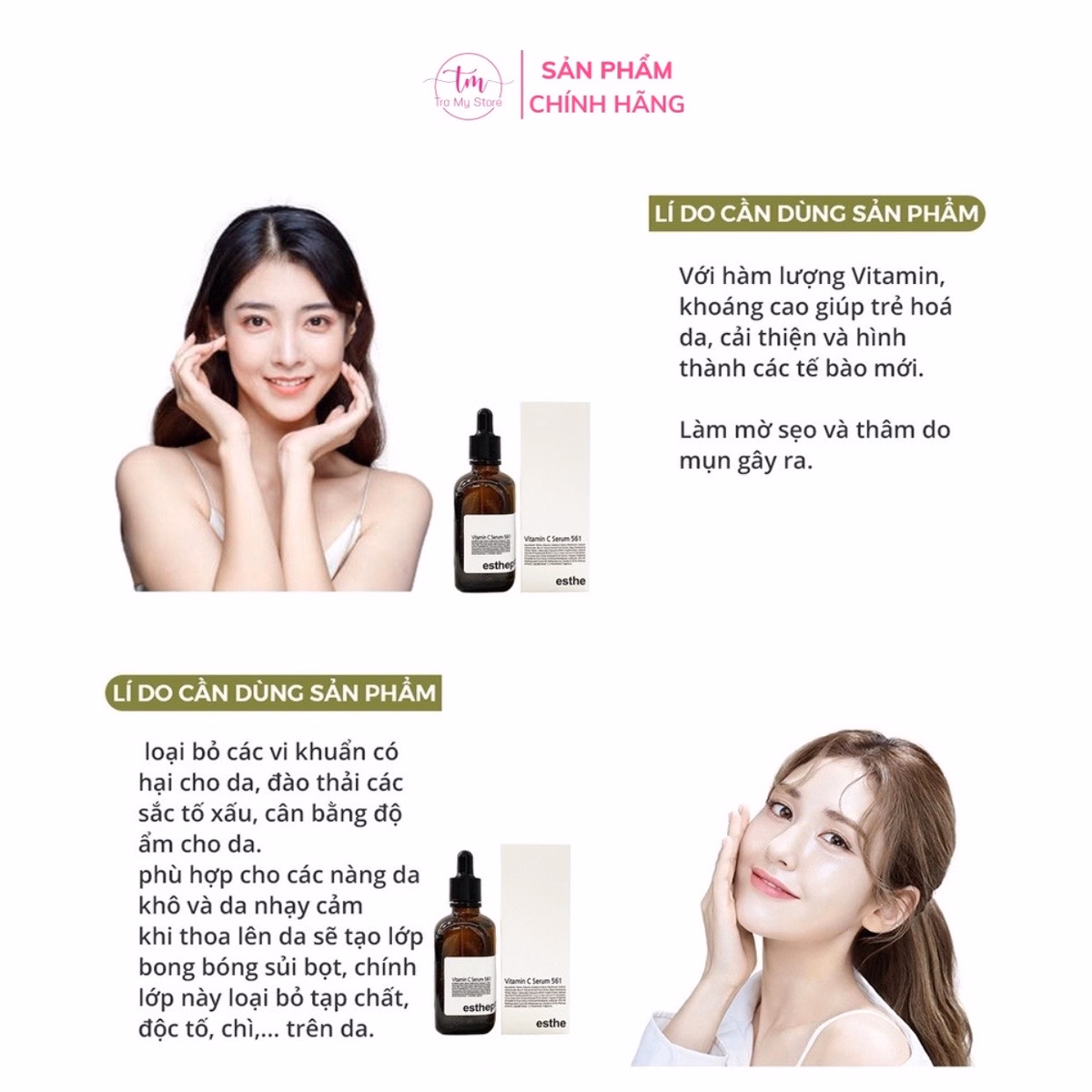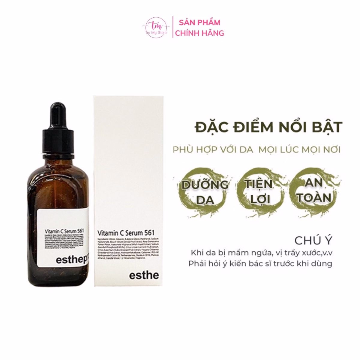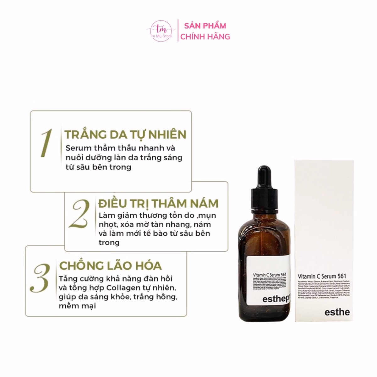 Esthemax Vitamin C Serum 561 với thành phần chính là vitamin C có tác dụng làm đều màu da và kích thích sản sinh collagen. Ngoài ra, sản phẩm còn chứa axit citric có tác dụng làm giảm thâm nám và dưỡng da trắng sáng.