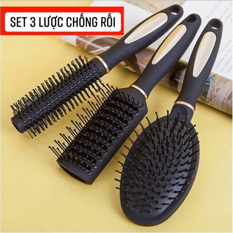 Set 3 lược chống rối tóc cao cấp bao gồm lược gỡ rối, lược chải khô nhanh và lược tạo kiểu tóc.