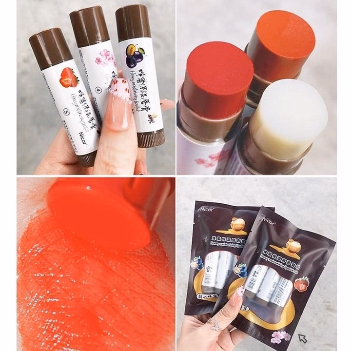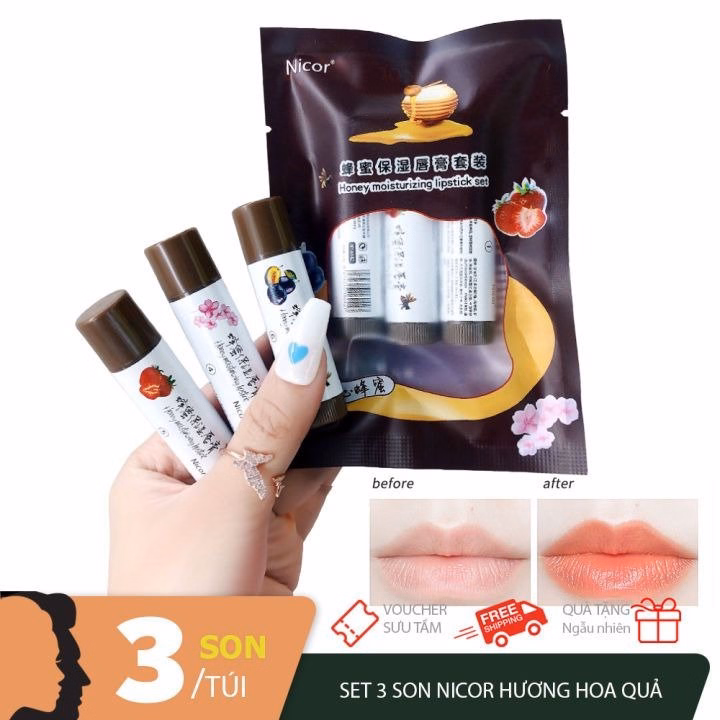 Thông tin sản phẩm: Set 3 Son Dưỡng Có Màu Nicor Dưỡng Ẩm Căng Mọng Mềm Môi Vị Hoa Quả – Gdn