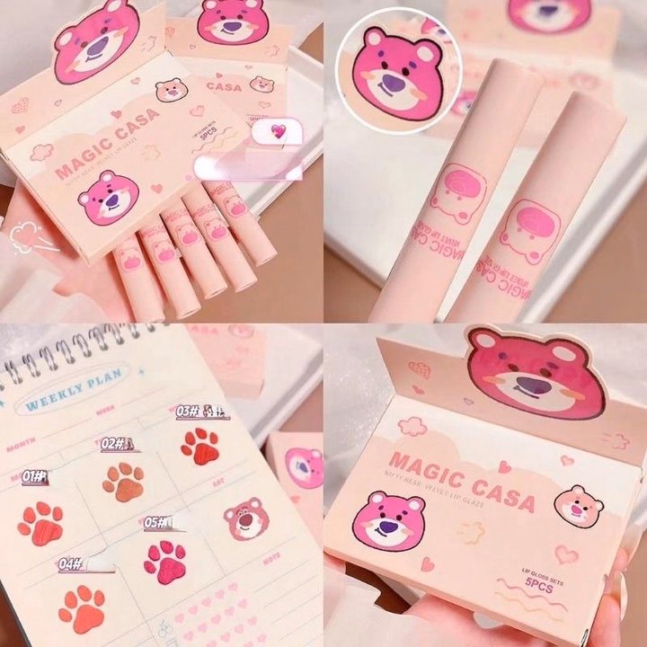 Tên sản phẩm: Set Son Kem Lì 5 Cây Hình Gấu Muge Lee – Gdn