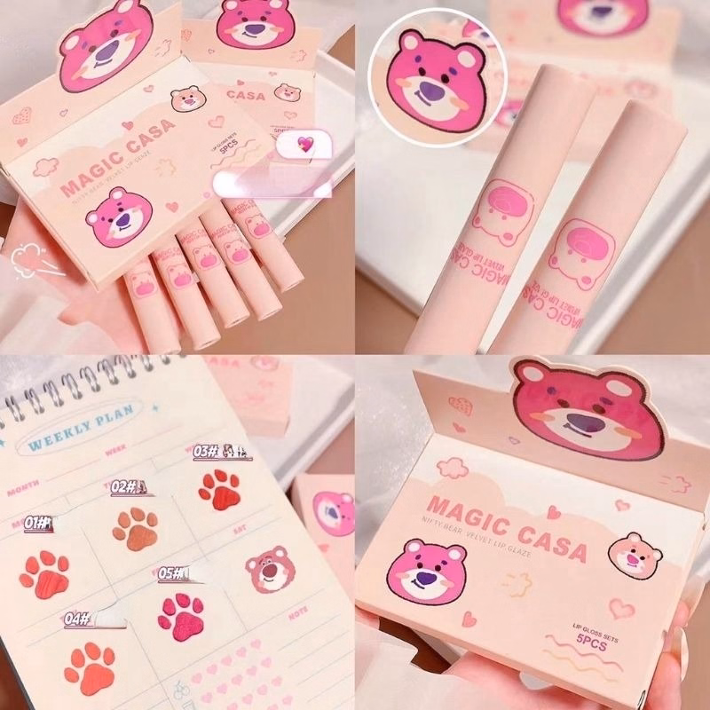 | Mẫu | set 5 hero hổ, set 5 thỏ hồng, set 5 vongee thỏ hồng, set son gấu 5 cây |