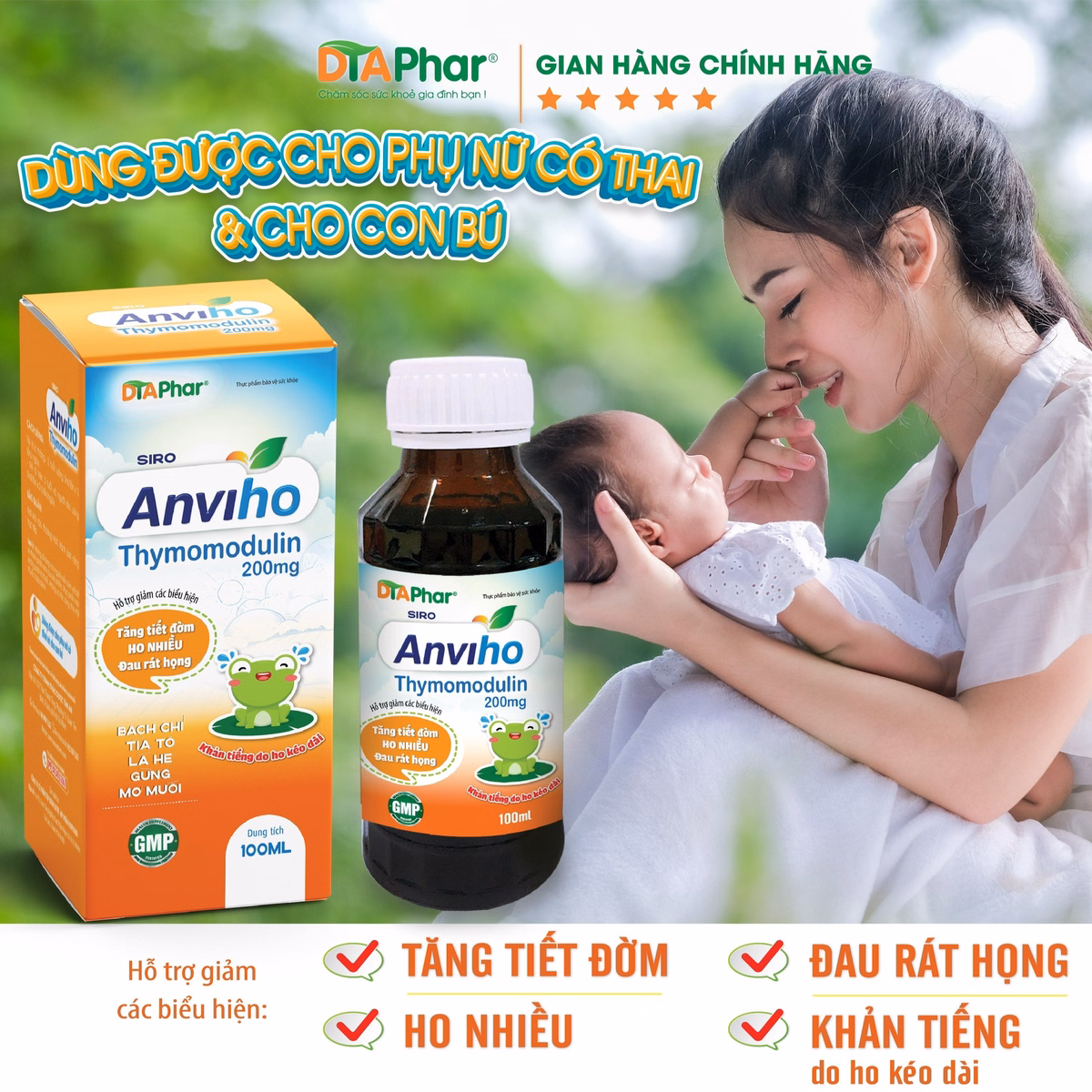 Tên sản phẩm: Siro Ho Anviho Dùng Được Cho Mẹ Bầu Và Trẻ Nhỏ 100ml – Tâm An Pharma