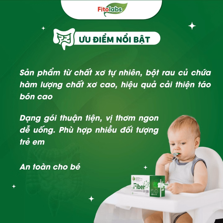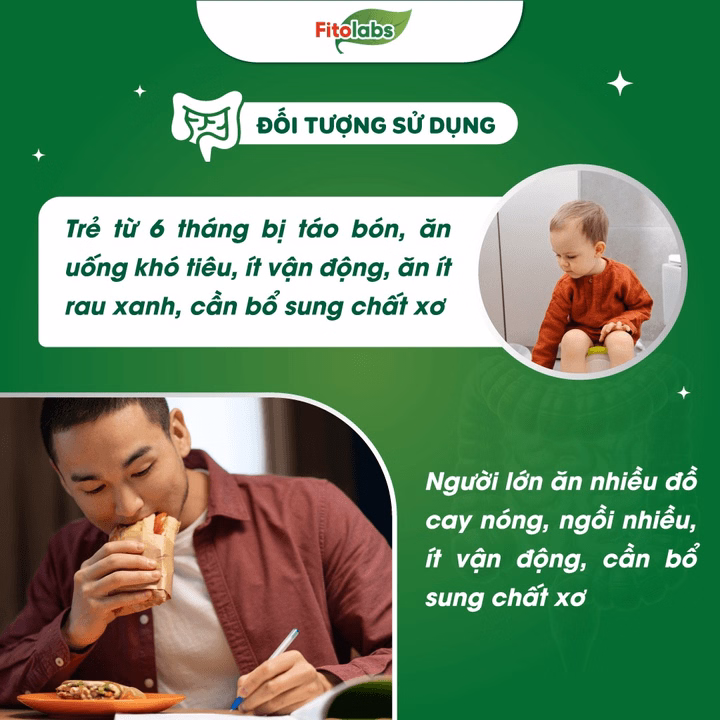 – Trẻ em bị táo bón, ăn uống khó tiêu, ít vận động, ăn ít rau xanh, cần bổ sung chất xơ