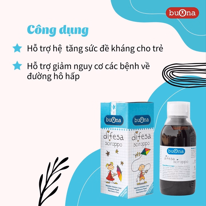 Buona Difesa là siro tăng đề kháng có thành phần hoàn toàn từ các thảo dược thiên nhiên, được nghiên cứu và sản xuất dựa trên các bài thuốc La Mã đã được chứng minh trên lâm sàng, giúp tăng cường và duy trì hệ miễn dịch trong cả 3 giai đoạn: Phòng Thủ – Tấn Công – Phục Hồi.