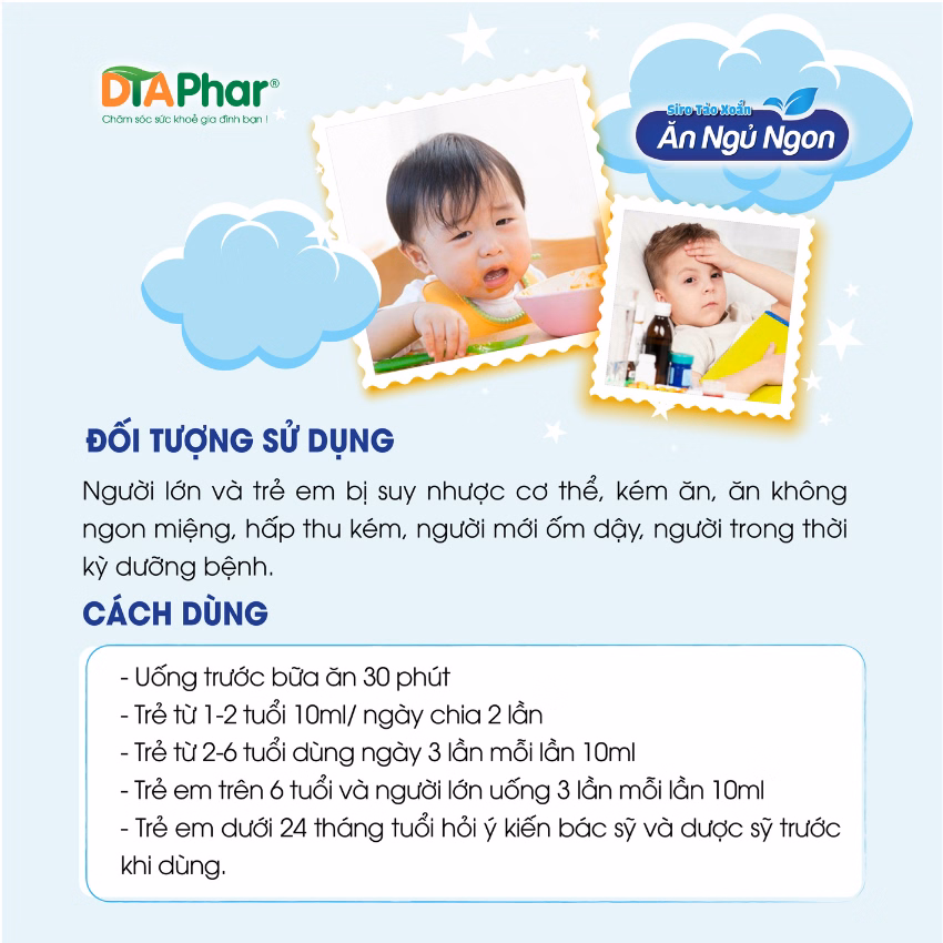 Hỗ trợ tăng cường tiêu hóa, giúp ăn ngon, ngủ ngon, bồi bổ sức khỏe.