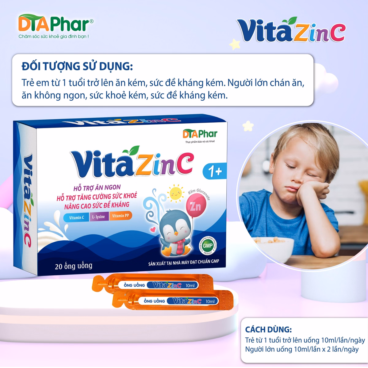 Siro Vitazinc Hỗ Trợ Ăn Ngon Tăng Cường Sức Khoẻ Nâng Cao Sức Đề Kháng Cho Bé Hộp 20 Ống