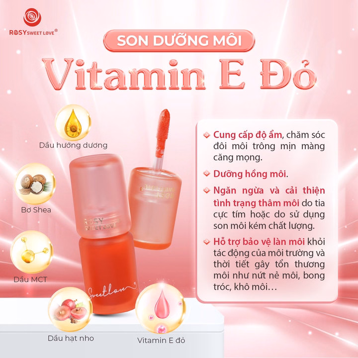 Son dưỡng môi Rosy Vitamin E Đỏ giúp: