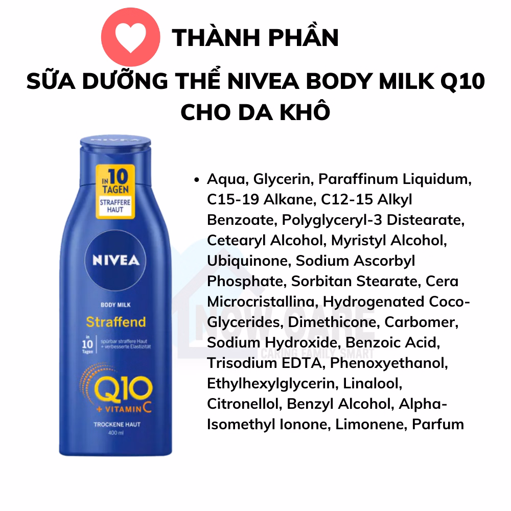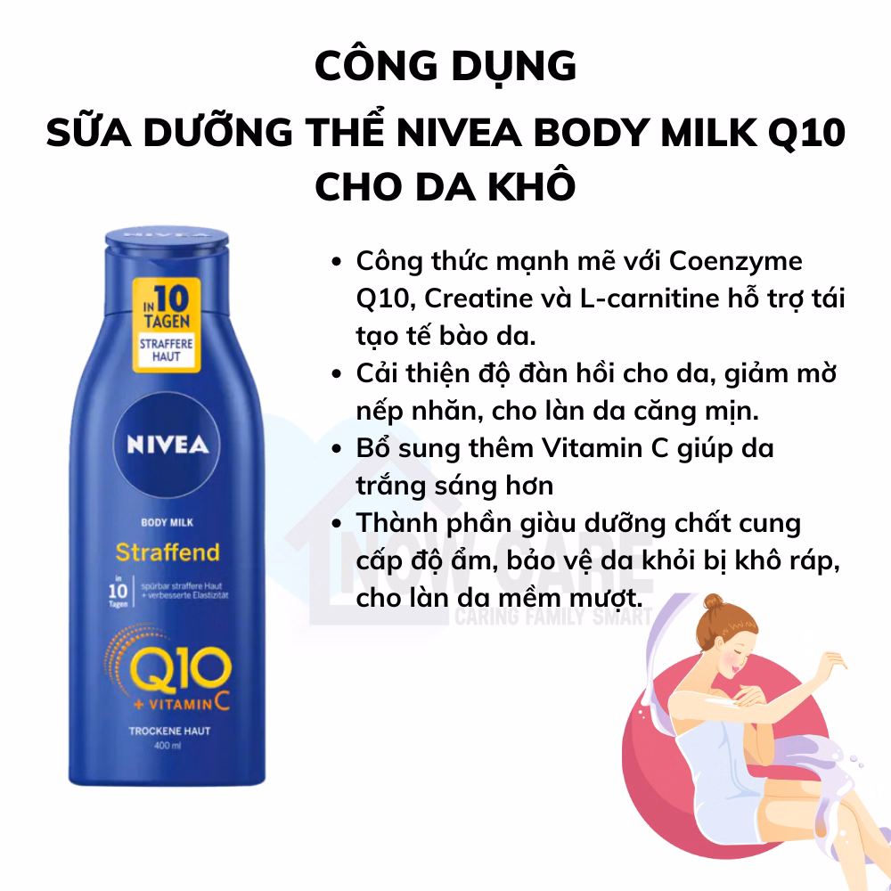 Tên sản phẩm: Sữa Dưỡng Thể Body Milk Q10 Cho Da Khô 400ml – Nivea