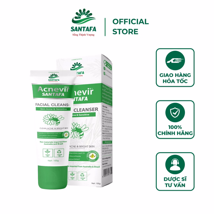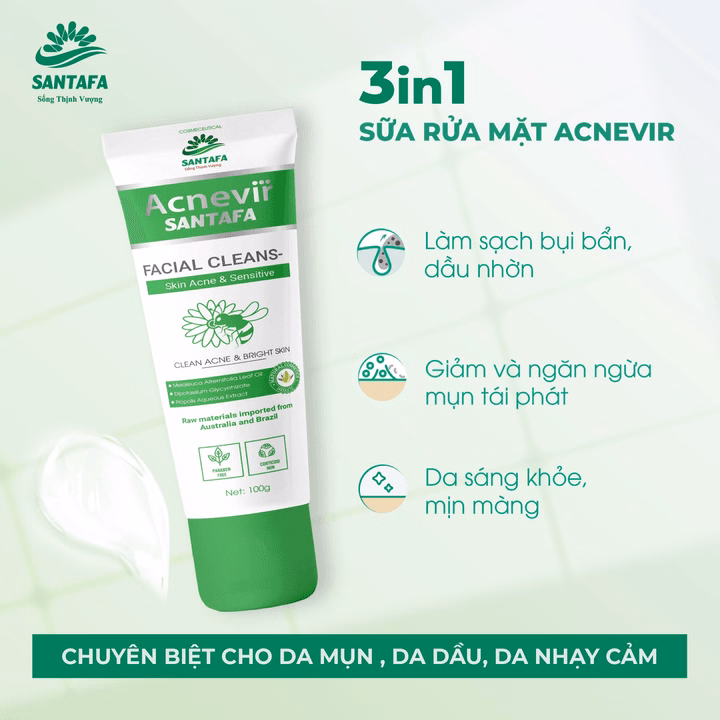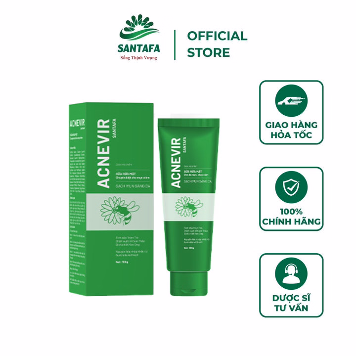 Sữa Rửa Mặt Acnevir Santafa Chiết Xuất Keo Ong Xanh Thiên Nhiên, An Toàn, Dành Cho Mọi Loại Da 100Gr – Santafa