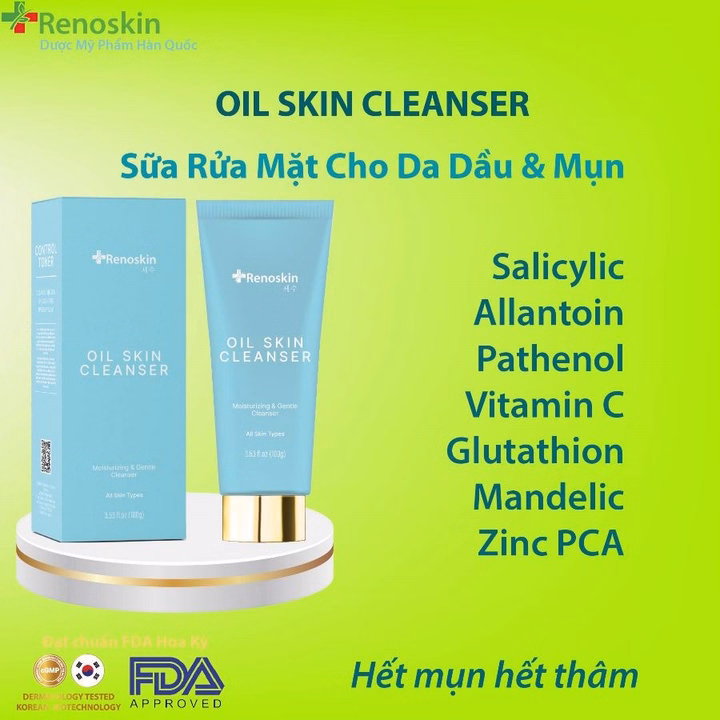 Sữa rửa mặt dành cho da dầu Oil Skin Cleanser làm sạch da, kiềm dầu để hỗ trợ trong điều trị mụn cũng như dưỡng trắng da làm mờ vết thâm do mụn gây ra.