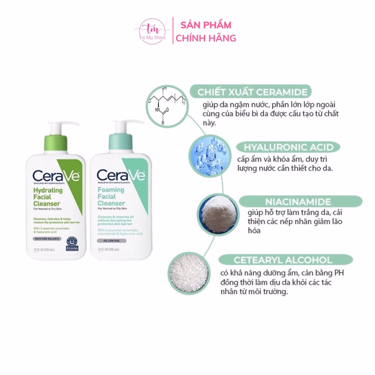 Cerave được Hiệp hội Eczema (Hiệp hội về bệnh chàm da) chấp nhận và cấp bằng sáng chế tại Mỹ. Là một trong những hãng mỹ phẩm lành tính rất được tin dùng trên toàn thế giới. Sữa rửa mặt Cerave luôn là sữa rửa mặt được khuyên dùng hàng ngày vì độ dịu nhẹ cũng như khả năng làm sạch da lý tưởng.