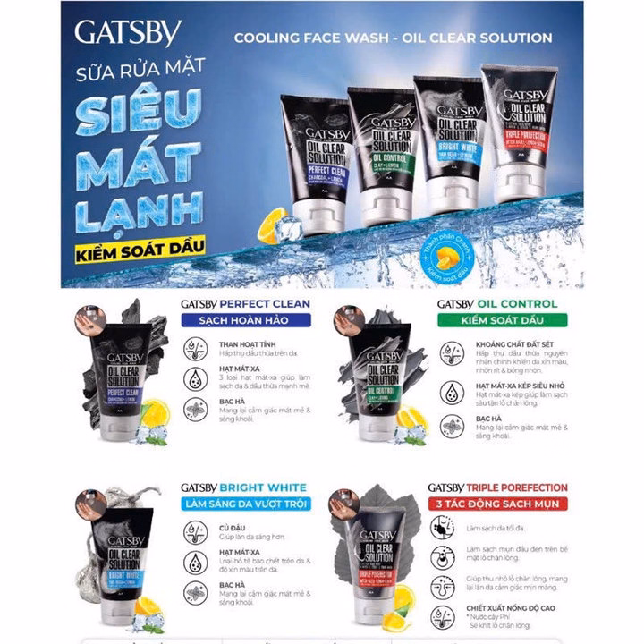 Sữa Rửa Mặt Nam Gatsby Oil Clear Solution 100g Sạch Dầu Sáng Da Sảng Khoái -Gdn