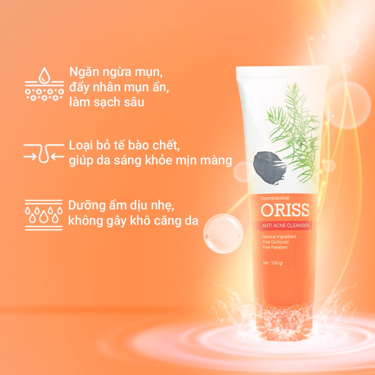 Sữa rửa mặt Oriss được thiết kế chuyên biệt dành riêng cho da mụn chiết xuất bởi các thành phần 100% từ thiên nhiên lành tính không chứa Paraben hay Corticoid gây hại cho da.