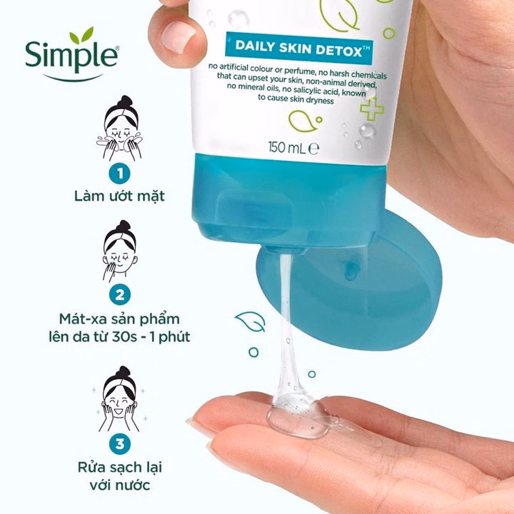Thông tin sản phẩm: Sữa Rửa Mặt Simple 150ml Lành Tính Dịu Nhẹ Cho Da Nhạy Cảm/Da Dầu Mụn – Gdn