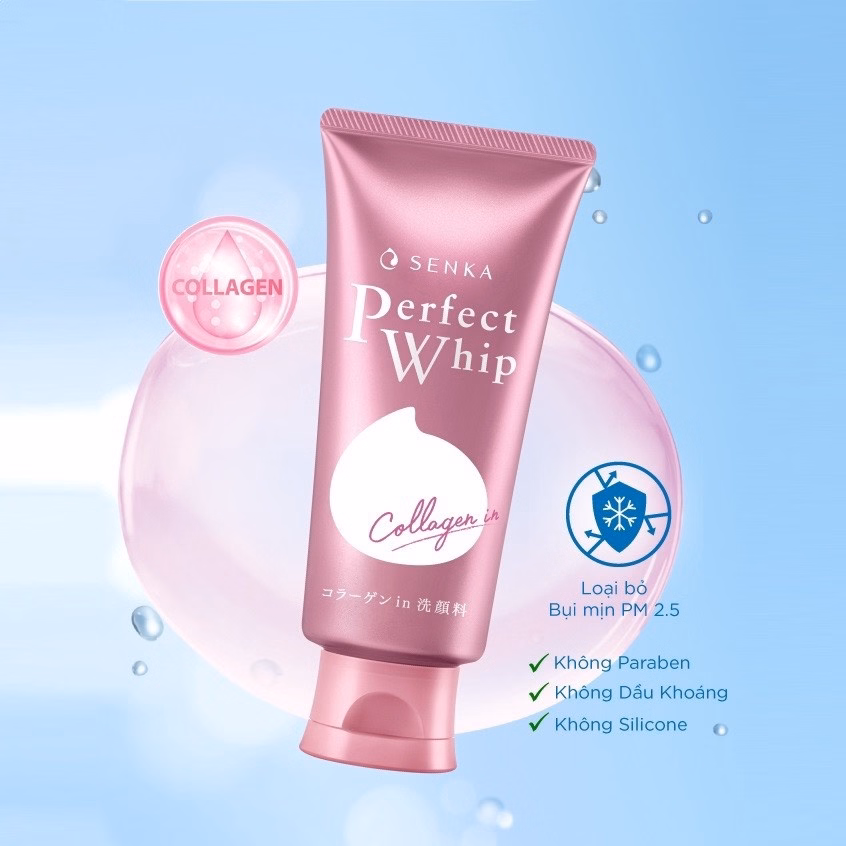 Sữa Rửa Mặt Collagen Senka Perfect Whip Collagen In 120g với bọt tơ tằm trắng mịn kết hợp với tinh chất collagen, nhẹ nhàng làm sạch bụi bẩn, bã nhờn sâu bên trong lỗ chân lông, đồng thời giúp da săn chắc, đàn hồi, căng mịn, làm mờ nếp nhăn, vết chân chim, hạn chế tình trạng chảy xệ da.