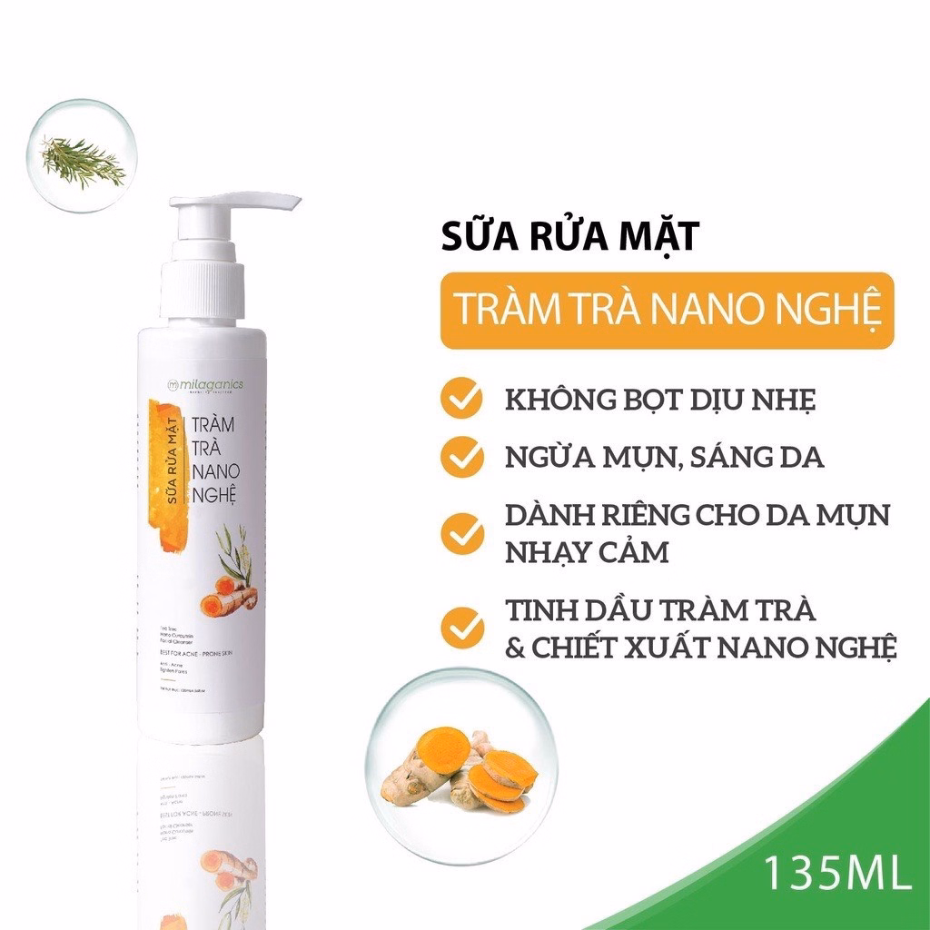 Sữa Rửa Mặt Tràm Trà Nano Nghệ Ngăn Ngừa Mụn, Làm Sạch Da Nhạy Cảm 135Ml – Milaganics