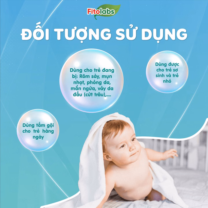 – Dùng cho trẻ đang bị : Rôm sảy, mụn nhọt, phỏng da, mẩn ngứa, vẩy da đầu ( cứt trâu)…