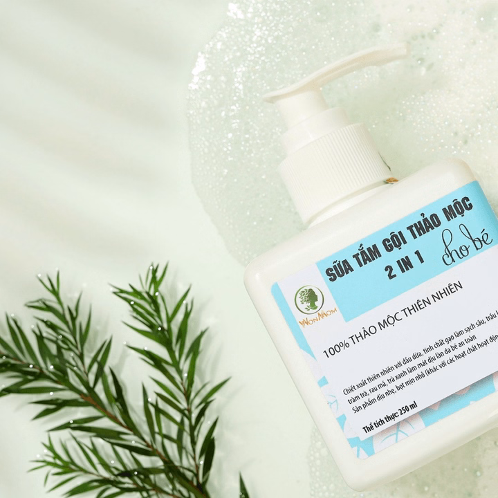 Sữa tắm và gội cho bé Wonmom là 1 trong số 10 sản phẩm được nhiều mẹ bỉm sữa tin dùng với nguyên liệu 100% thảo mộc thiên nhiên: dầu dừa, tinh chất gạo, trầu không, tràm trà, rau má, trà xanh.