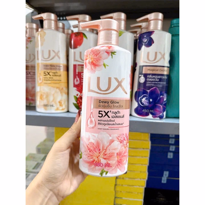 – Lux hoa anh đào Sakura Bloom (Lux hồng Sakura): Trải nghiệm hương thơm dịu nhẹ, độc đáo của mùa hoa anh đào, là kem tắm kết hợp mùi hương mềm mại của nước hoa đẳng cấp thế giới, cho làn da trắng hồng tự nhiên.