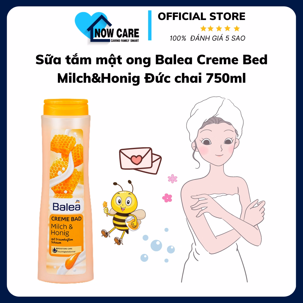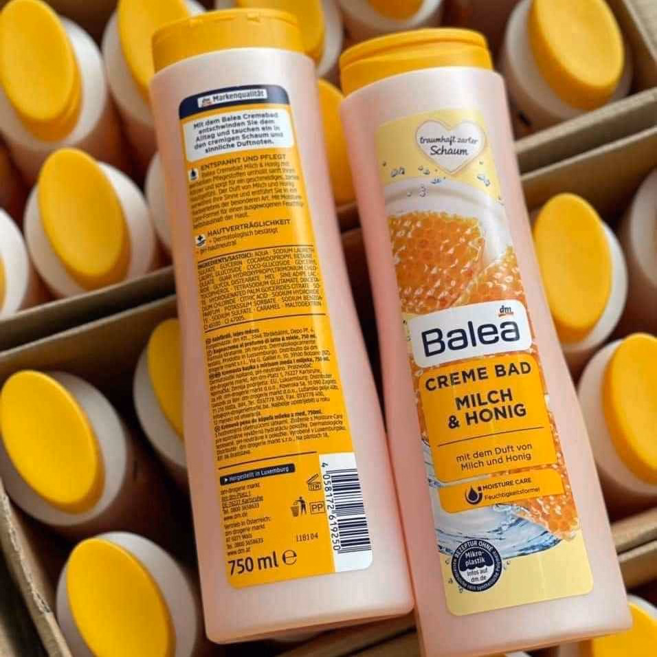 Sữa tắm mật ong Balea Creme Bed Milch&Honig Đức chai 750ml chiết xuất sữa và mật ong với bọt kem tắm mềm giúp làm sạch và bảo vệ da khỏi bị khô.