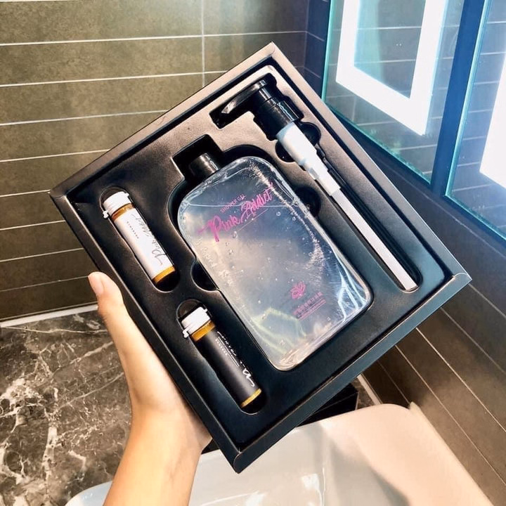 Sữa tắm Pink Addict gồm một 1 sữa tắm 400ml và hai lọ nhỏ: 10ml hương nước hoa + 10ml tinh chất dưỡng da.