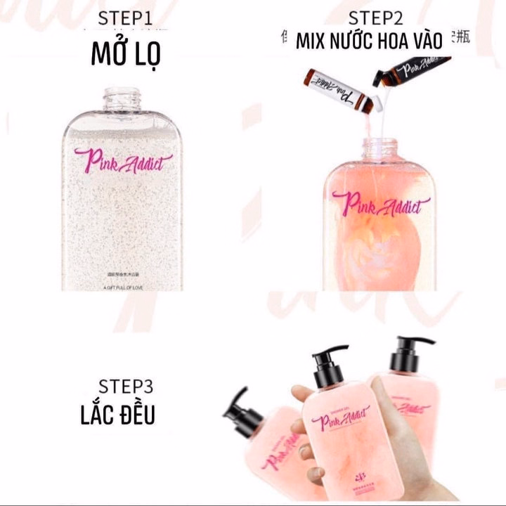 Sữa tắm nước hoa Pink Addict 420ml Diy tự pha Hương thơm quyến rũ và bí ẩn Lưu hương lâu dưỡng ẩm sáng da mờ thâm