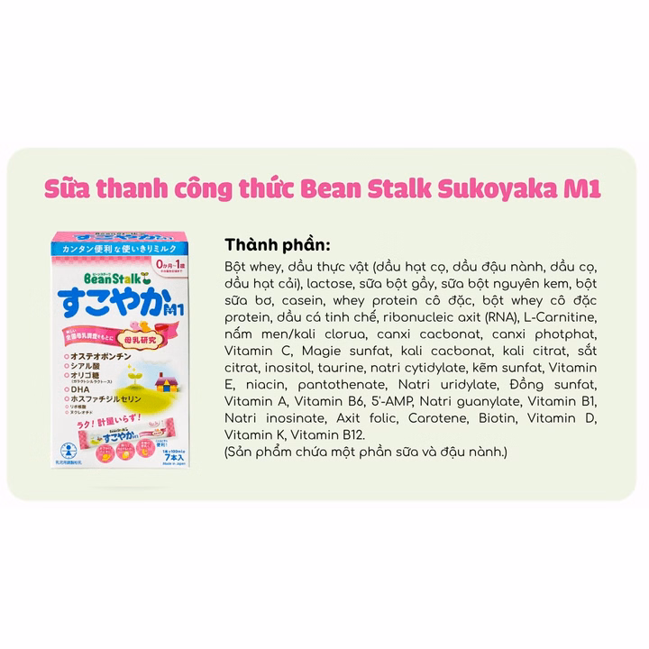 Bean Stalk Sukoyaka M1 là sản phẩm dinh dưỡng công thức dành cho bé từ 0 đến 1 tuổi, sản phẩm chứa thành phần chính là: