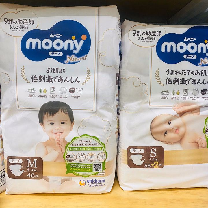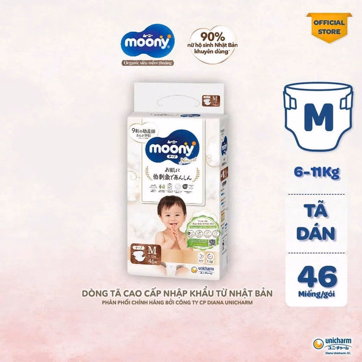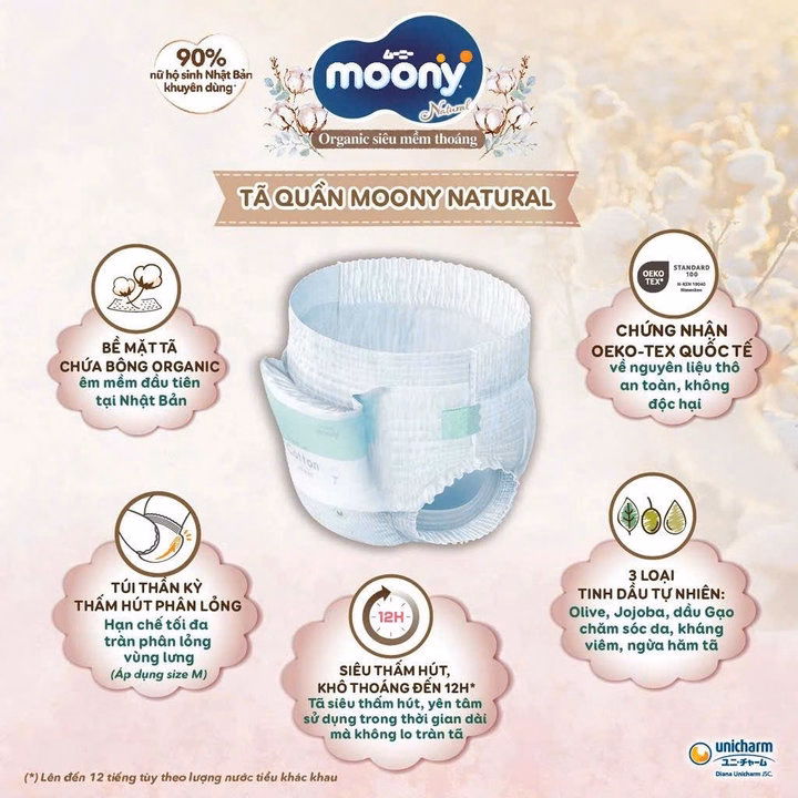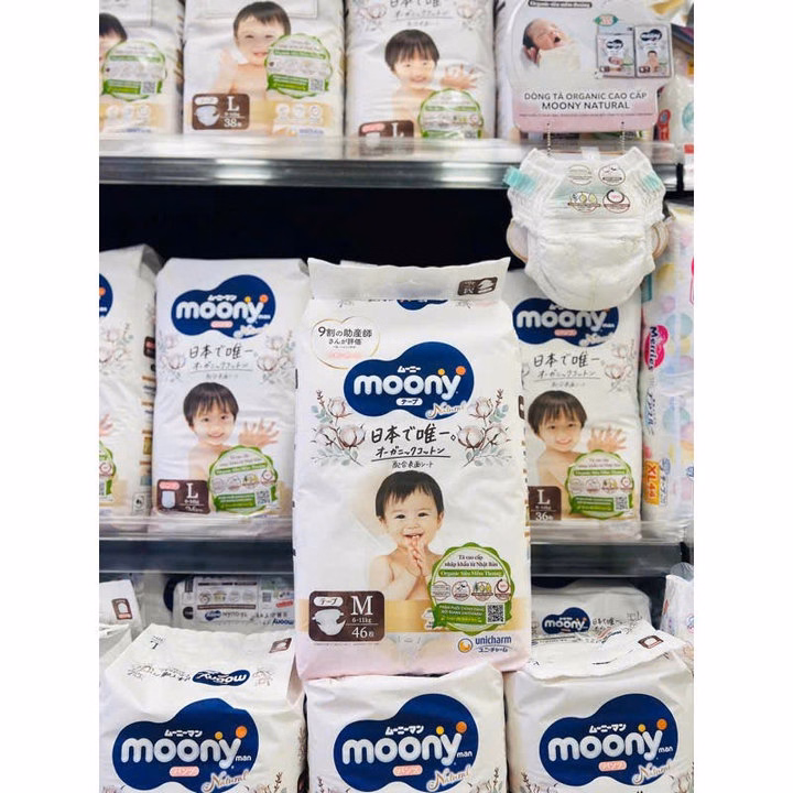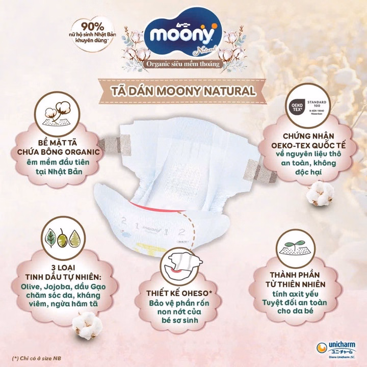 Tã Dán, Tả Quần Moony Natural Mặt Bông Hữu Cơ An Toàn Chứa Dầu Thực Vật Dưỡng Ẩm Cho Bé L058