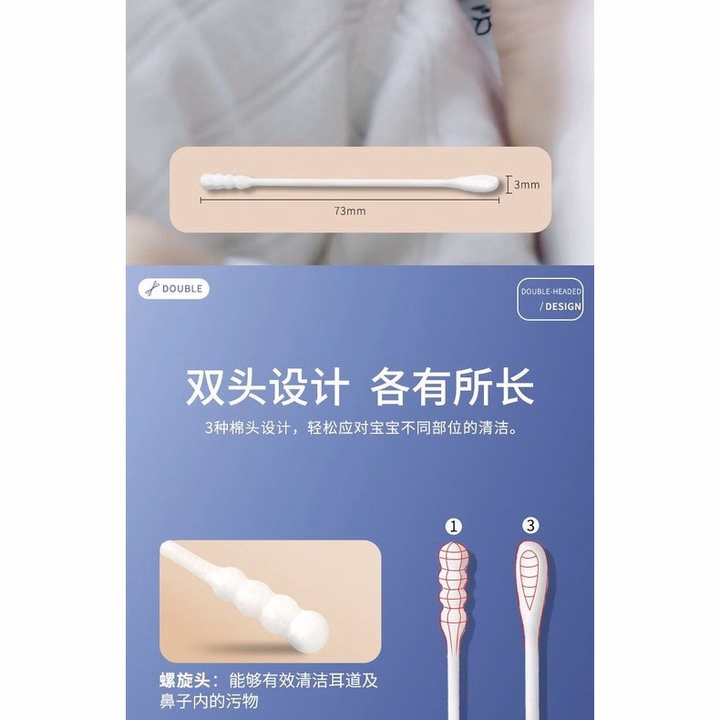 – Với 2 đầu tăm thiết kế hình dáng khác nhau: 1 đầu tròn, 1 đầu dẹt, tiện lợi hơn trong việc chăm sóc bé.