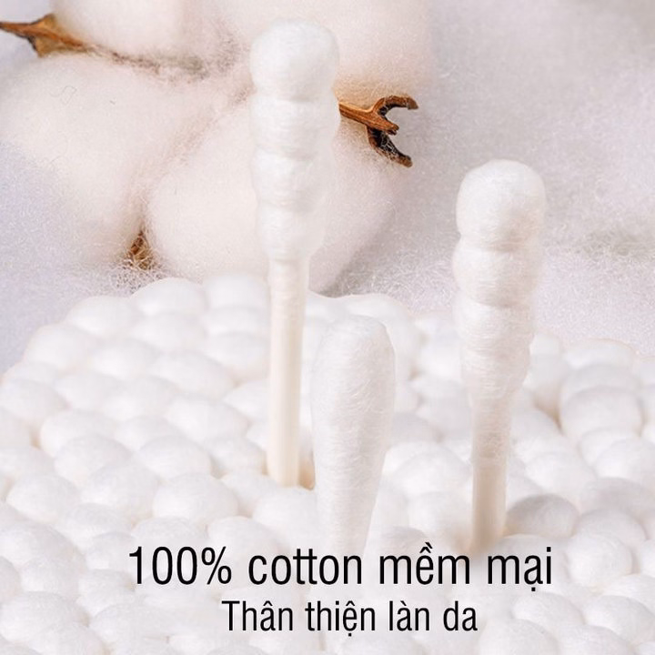 -Tăm bông được làm bằng bông hoàn toàn tự nhiên, an toàn tuyệt đối cho bé.