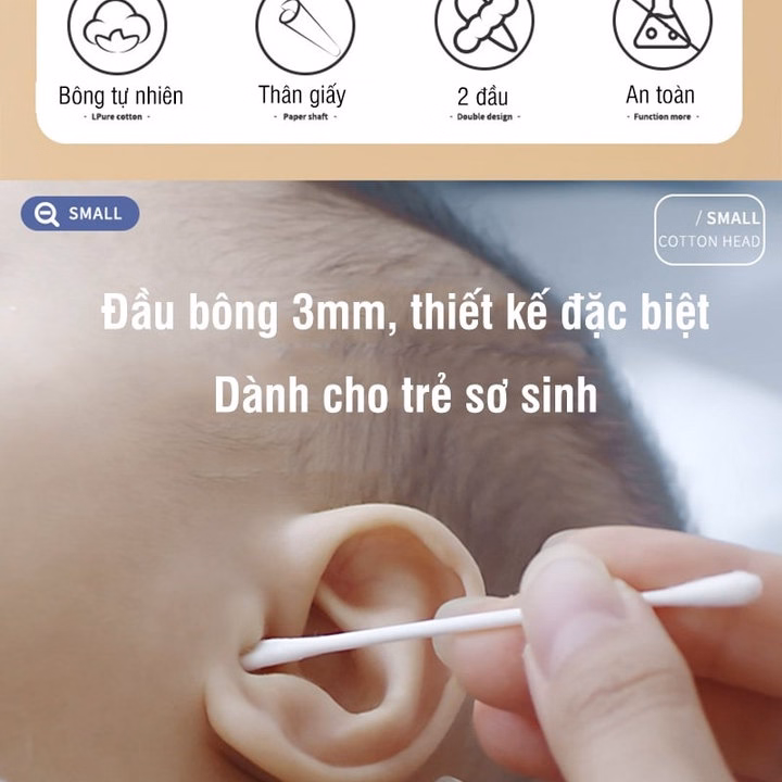 – Đầu tăm kích thước 3.5mm phù hợp với các bé từ sơ sinh.