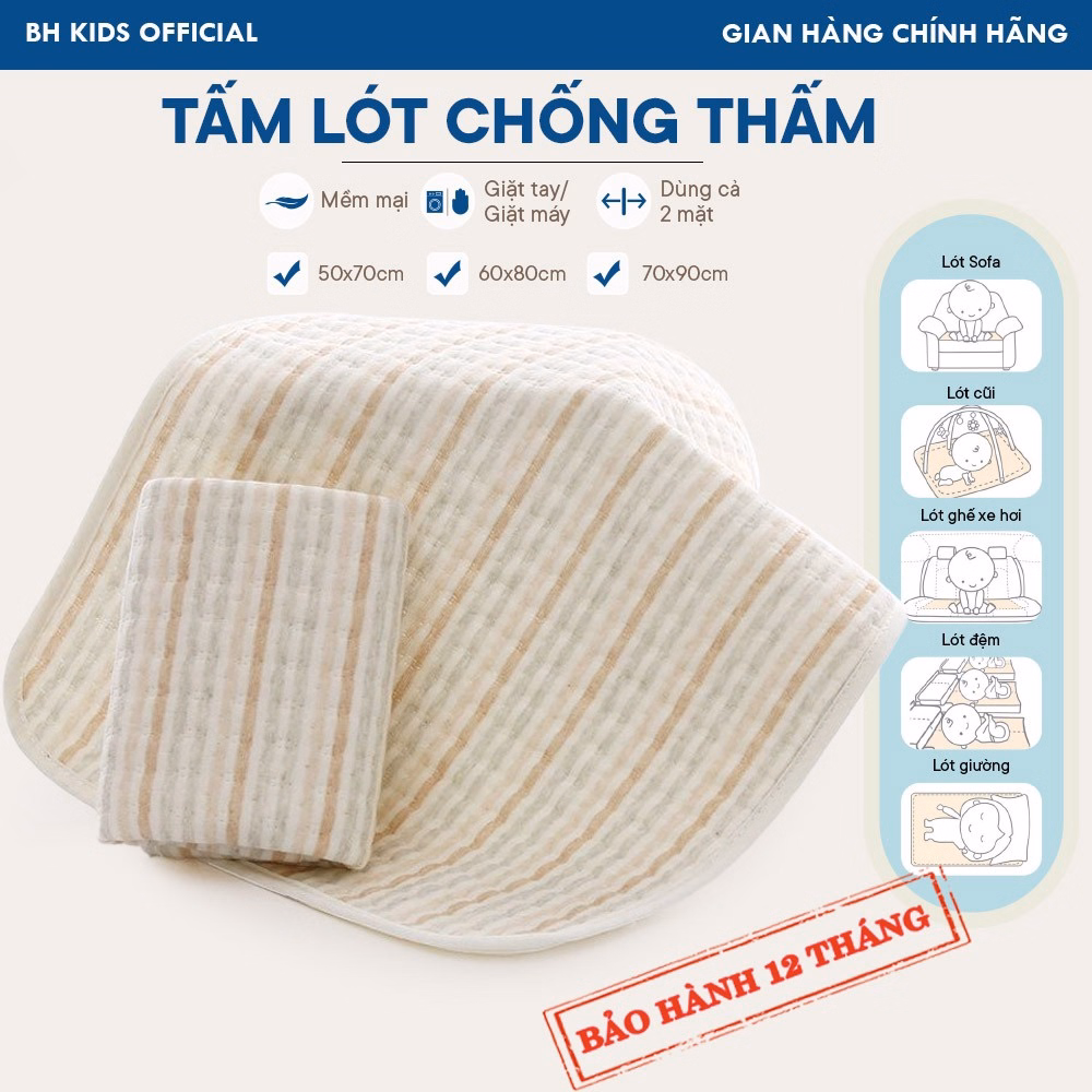 Tấm Lót Chống Thấm Đa Năng Cho Bé, Cho Mẹ Sau Sinh, Người Cao Tuổi Organic Cao Cấp, Mềm Mại, Dùng Cả 2 Mặt Ch132 – Bh Kids