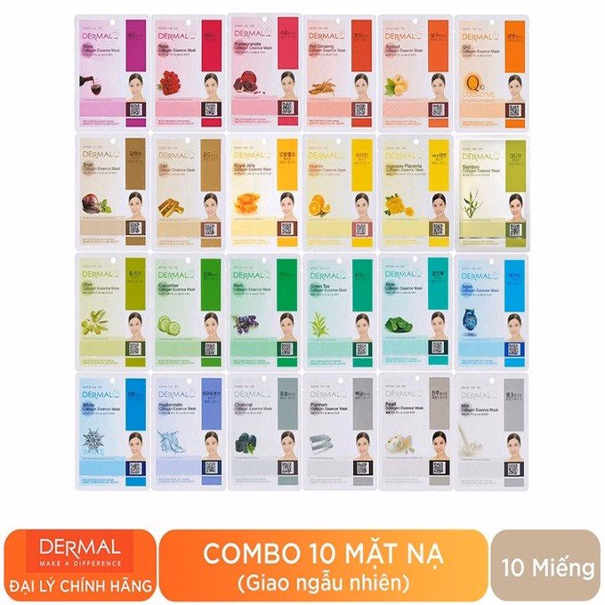 Combo 10 miếng mặt nạ dưỡng da Dermal Hàn Quốc 23g ( 10 x 23 g)