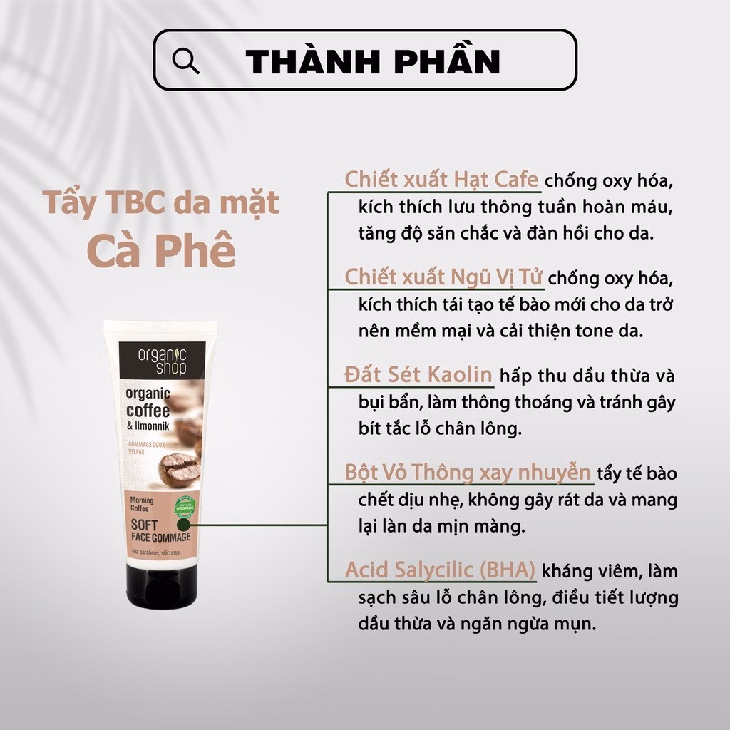 Tẩy Da Chết Mặt Organic Shop Cà Phê 75Ml Nga – Organic Shop