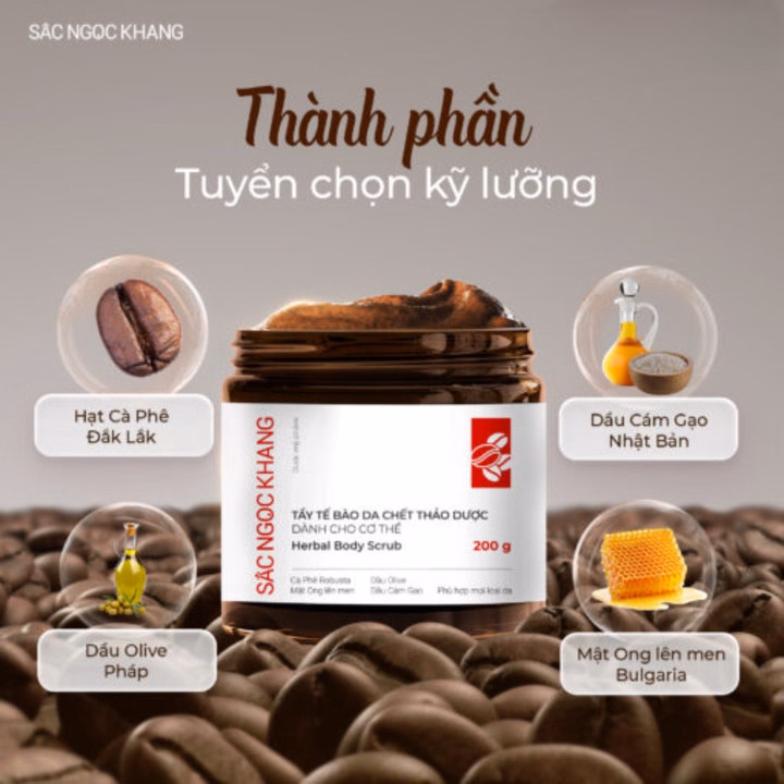 Tẩy Tế Bào Da Chết Thảo Dược Dành Cho Cơ Thể Sắc Ngọc Khang với bảng thành phần thiên nhiên lành tính sẽ là sự lựa chọn hoàn hảo cho mọi loại da.