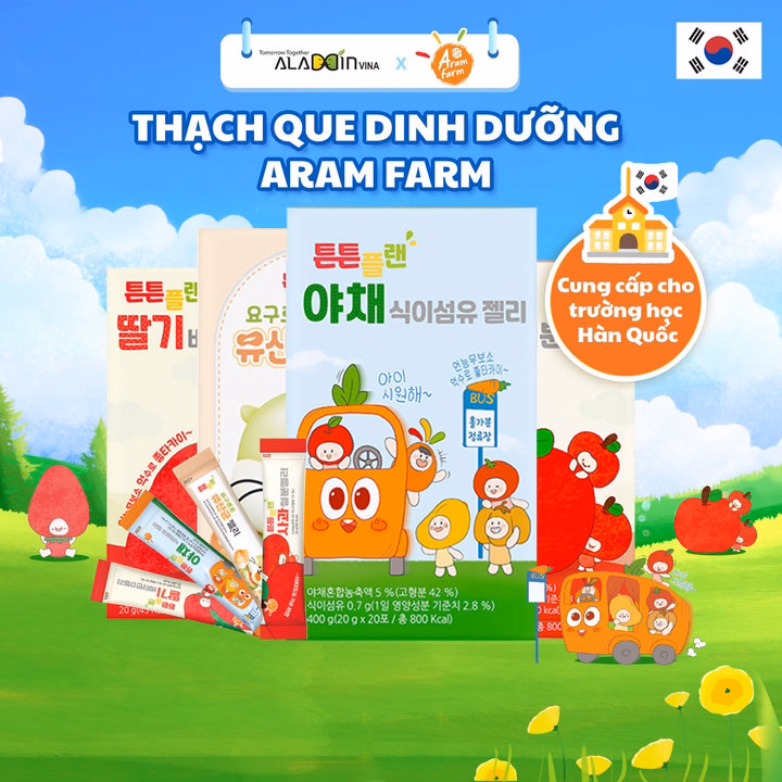 Thạch Dinh Dưỡng Cho Bé 1 Tuổi Aram Farm Bổ Sung Chất Xơ Từ 23 Loại Rau Củ, An Toàn, Không Chất Bảo Quản