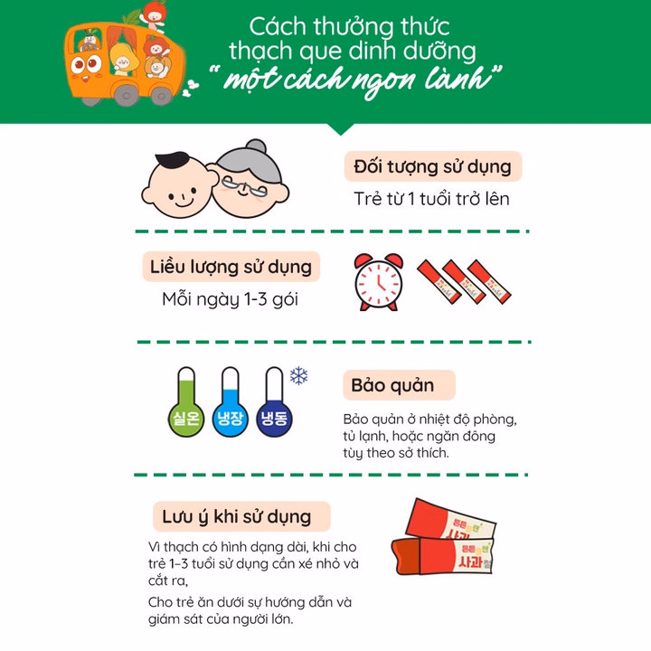 Gồm 4 vị: Rau câu, táo, dâu, sữa chua.