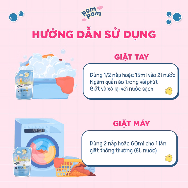 ☘ Giặt máy: Dùng 2 nắp hoặc 60ml cho 1 lần giặt thông thường (8L nước).