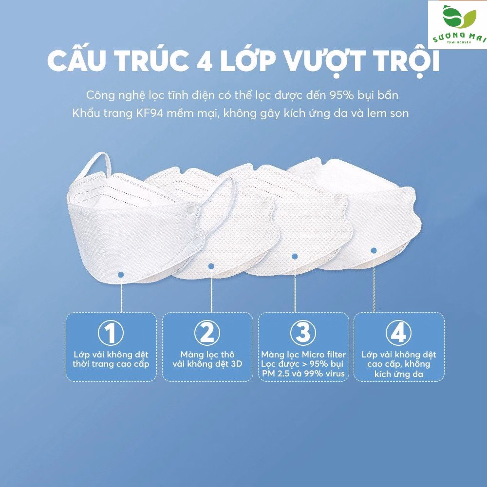 Sản phẩm khẩu trang chống bụi siêu mịn Kf94 Td Mask với 4 lớp lọc, đảm bảo lọc ít nhất 94% các vật thể trong không khí, bao gồm bụi siêu mịn Pm2,5 và vi khuẩn, đạt tiêu chuẩn an toàn sức khỏe do trung tâm kiểm nghiệm và chứng nhận chất lượng Tqc công bố. Khẩu trang chống bụi siêu mịn Kf94 Td Mask được làm từ vải không dệt, thiết kế 3D, tạo thoải mái trong việc hít thở, ôm khít khuôn mặt nên hạn chế tối đa khói bụi, không làm mờ kính khi đeo, không lem trang điểm.