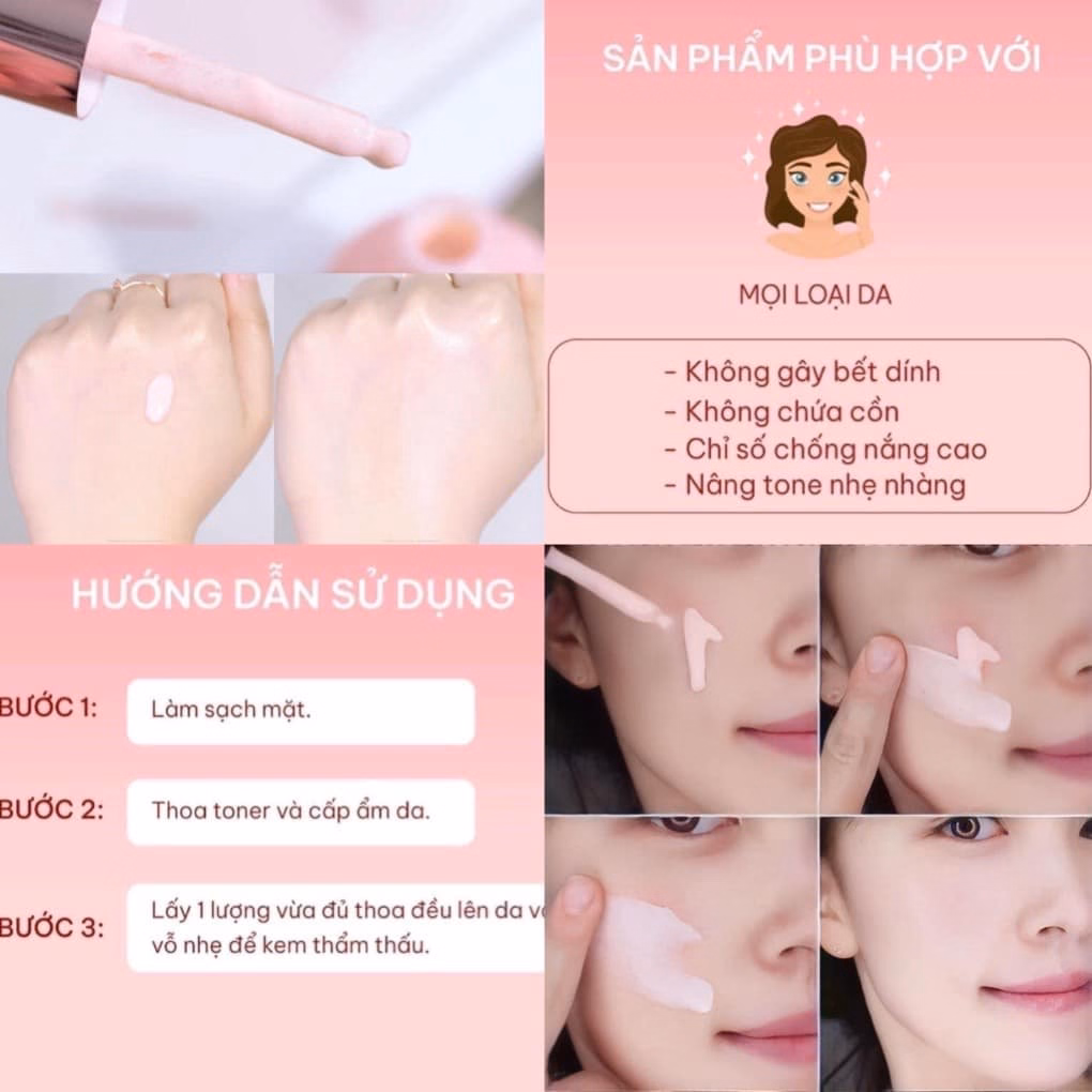 – Nâng tông da tức thì, làm đều màu da. Có thể thay thế kem lót