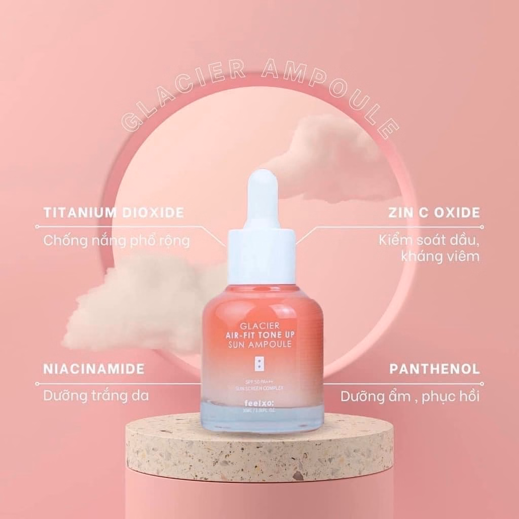 Tinh Chất Chống Nắng Dưỡng Trắng Nâng Tone Feelxo Glacier Air- Fit Tone Up Sun Ampoule Spf50+/Pa+++ 30Ml – Pink Tone Up