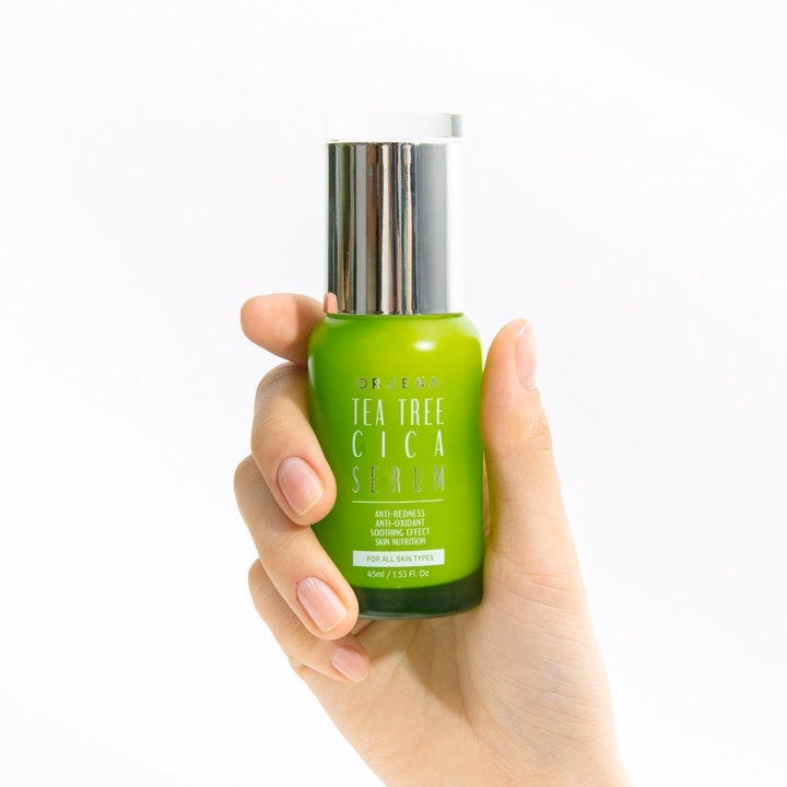 Tinh chất Orjena chiết xuất trà xanh và rau má là sản phẩm nằm trong bộ sưu tập chăm sóc da cơ bản hàng đầu “Tea Tree Cica” đến từ thương hiệu Orjena của Hàn Quốc. Bộ sưu tập gồm có 4 sản phẩm chính: Nước hoa hồng, sữa dưỡng, serum và kem dưỡng.